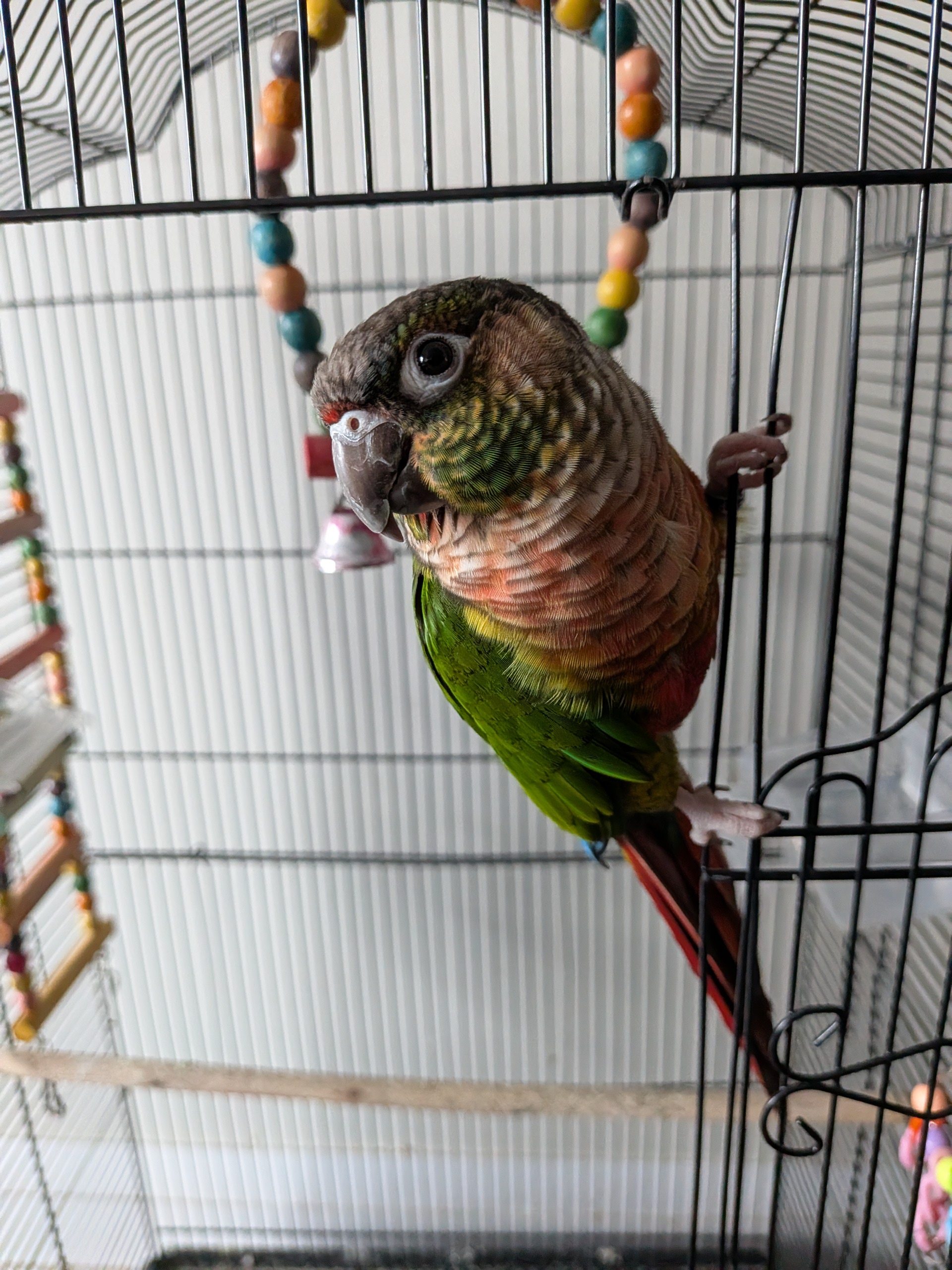 Meet Biju, a vibrant and social 5-year-old conure ready to find his next best friend! Biju is incredibly curious and a quick learner. He loves to mimic sounds, whistles, and can even say his own name. Comfortable being handled and genuinely enjoys cuddles, Biju comes with his large main cage, a travel cage, and a starter pack of his current diet.